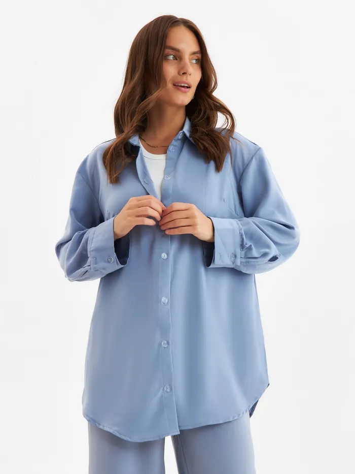 Костюм женский (рубашка, брюки) MINAKU: Silk pleasure цвет серо-голубой, размер 48 — Характеристики