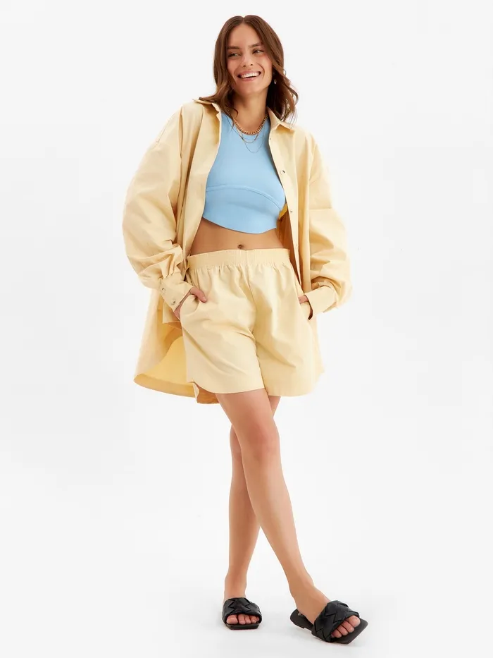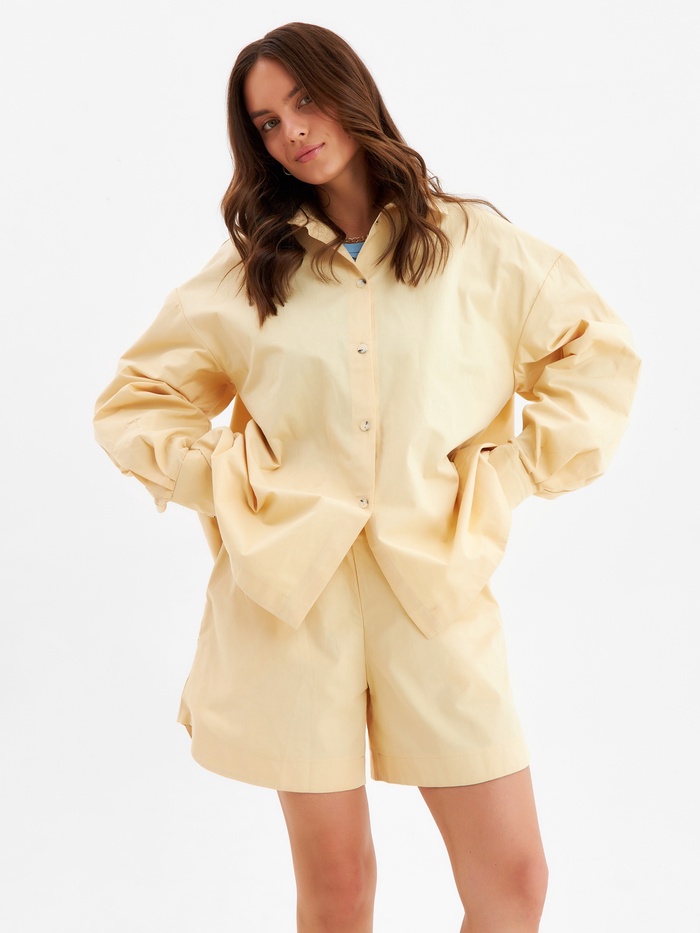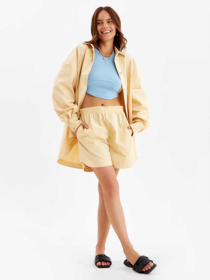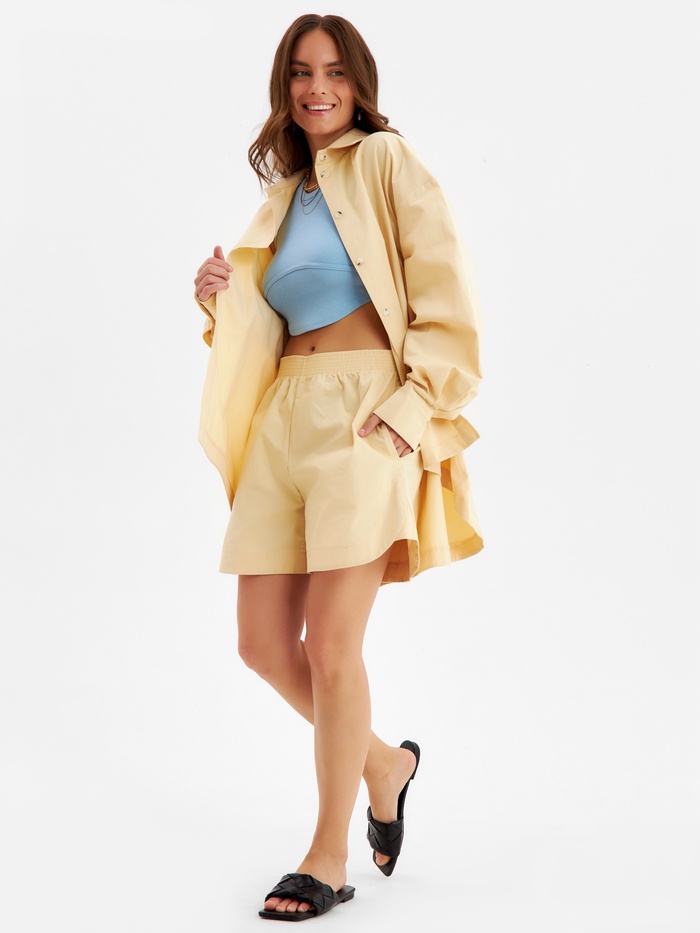 Костюм женский (рубашка, шорты) MINAKU: Oversize цвет бежевый, размер 42 — Характеристики