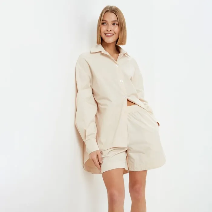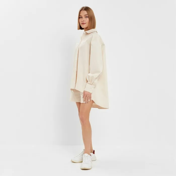 Костюм женский (рубашка, шорты) MINAKU: Oversize цвет молочный, размер 44 — Характеристики