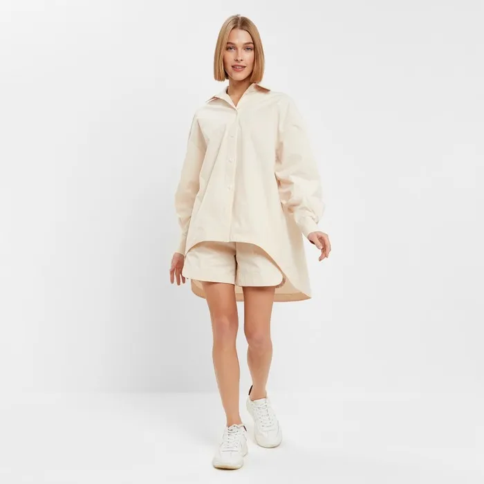 Костюм женский (рубашка, шорты) MINAKU: Oversize цвет молочный, размер 46 — Характеристики