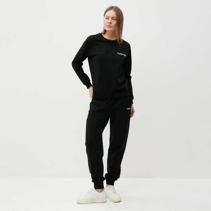 Костюм женский (свитшот/брюки), цвет чёрный, размер 42