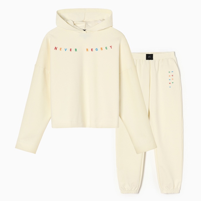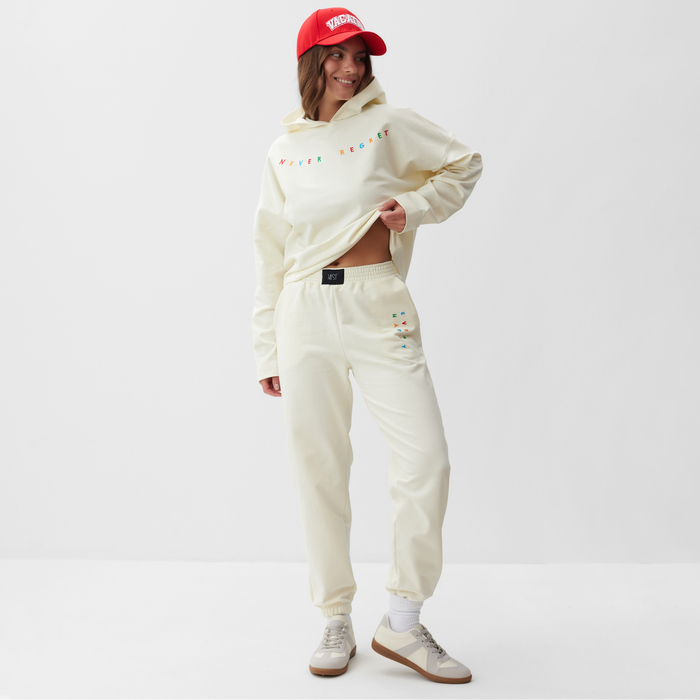 Костюм женский (толстовка и брюки) MIST No regrets с вышивкой, р. 44-46, молочный — Характеристики