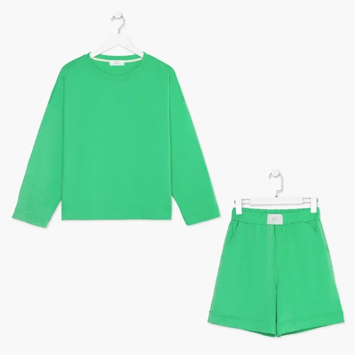 Костюм женский (толстовка и шорты) MIST, р. 48-50, зеленый — Характеристики