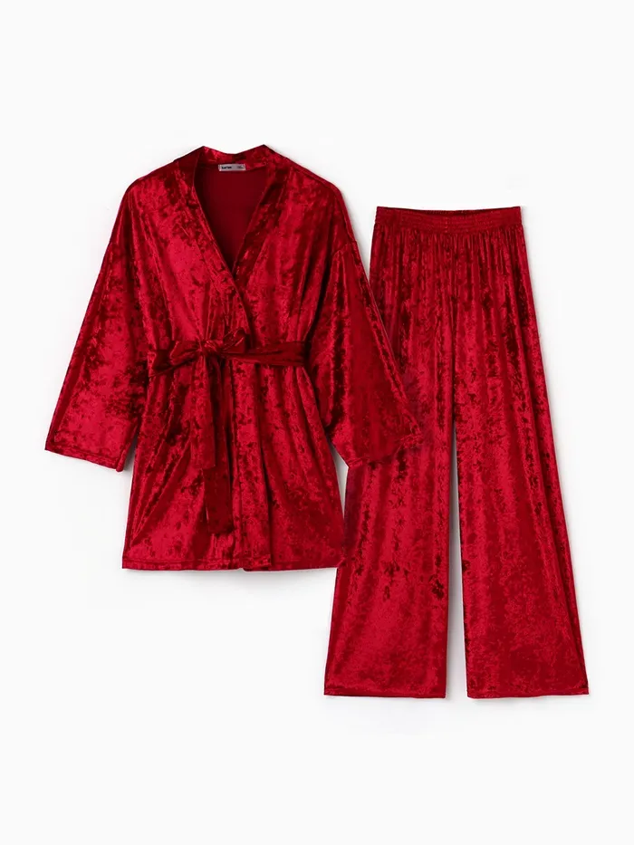 Костюм женский (жакет и брюки) KAFTAN «Бархат», размер 52-54, бордовый — Характеристики