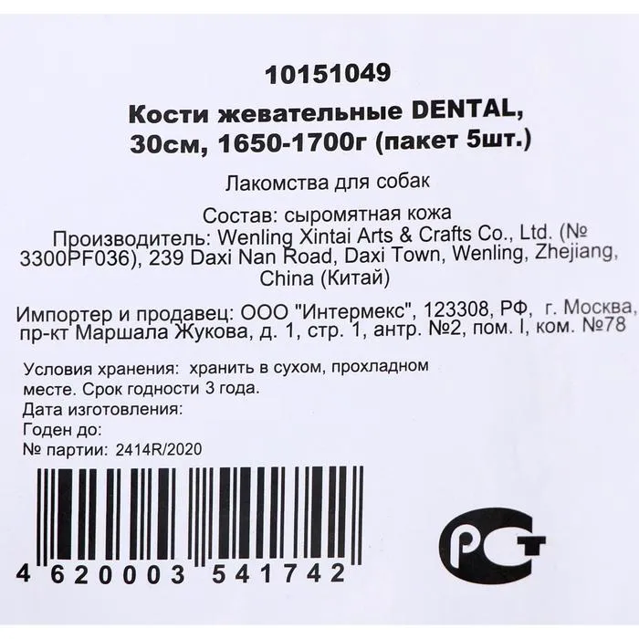 Косточка жевательная Triol DENTAL, 25см, 200-210г. (пакет 5шт.) — Характеристики