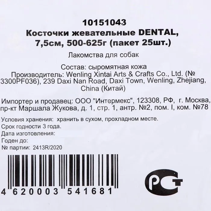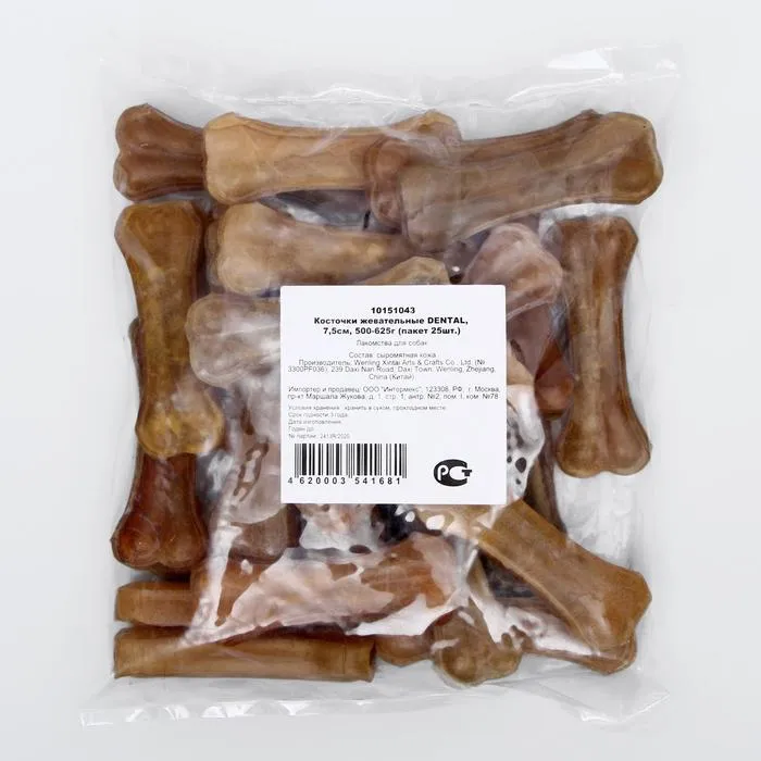Лакомство Кость жевательная Триол DENTAL - изготовлено из сыромятной кожи, долгоиграющее лакомство для собак средних и мелких пород.