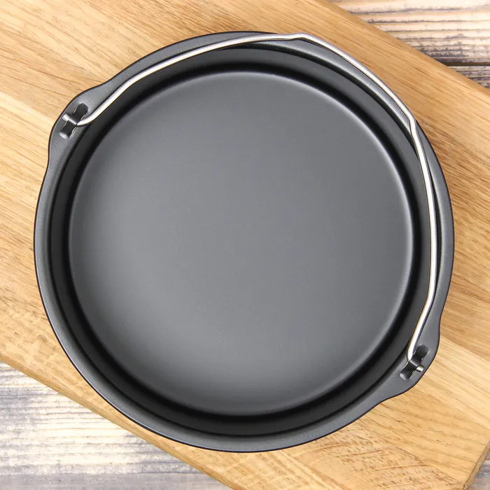 Котёл из углеродистой стали пригодится для варки и тушения блюд из мяса, рыбы, овощей и круп. Такая посуда незаменима во время похода: благодаря удобной ручке котёл можно легко подвесить над костром.