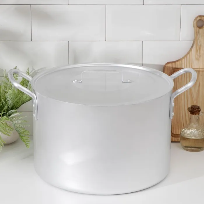 Котел легко мыть и хранить, штампованный алюминий очень прочен, устойчив к механическому и температурному воздействию. Содержимое котла быстро и равномерно нагревается, при выключении плиты так же быстро остывает. Удобная готовка в больших объемах, рациональное обустройство кухни и безопасность для здоровья – котел с металлической крышкой бренда Kalitva востребован на рынке многие десятки лет и не теряет своей актуальности.