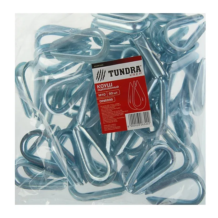 Коуш TUNDRA предназначен для установки на различные стальные канаты при изготовлении петли. Изделие предохраняет трос от перетирания.