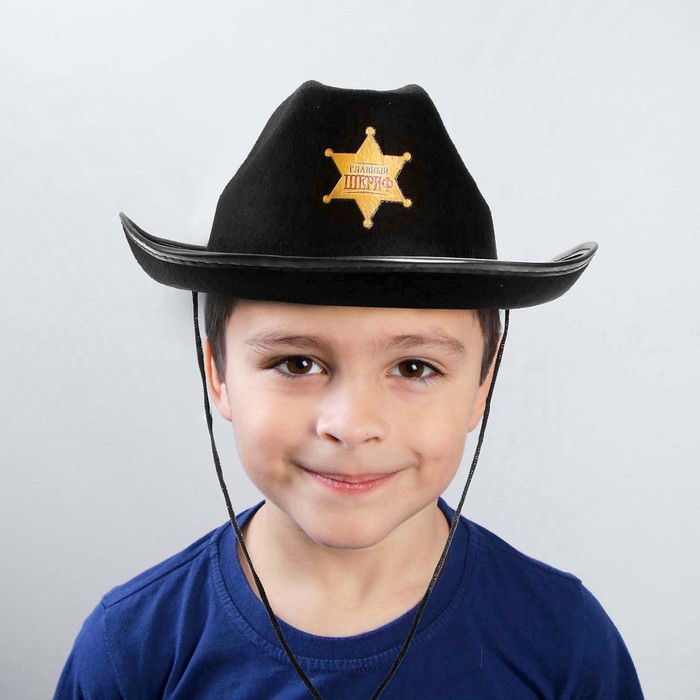 Ковбойская детская шляпа «Главный шериф», р-р. 52-54, цвет чёрный — Характеристики