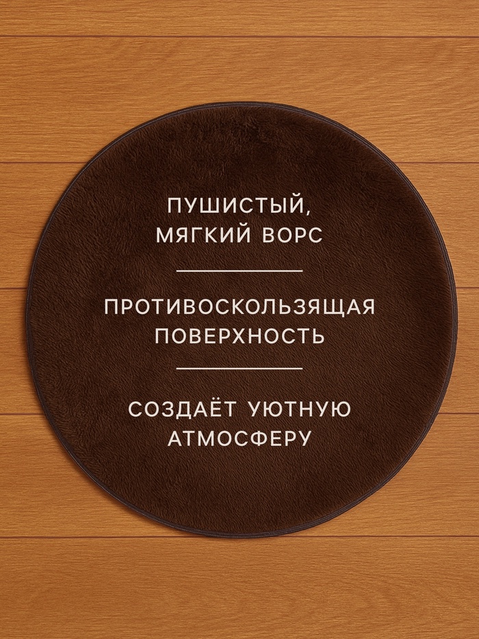Круглый коврик коричневого цвета станет стильным и уютным дополнением вашего интерьера, создавая атмосферу домашнего тепла и комфорта. Изготовленный из полиэстера, этот коврик подходит для использования как взрослыми, так и детьми, добавляя нотки уюта в любое помещение. Его однотонный дизайн легко вписывается в различные стили оформления, от современного минимализма до классической элегантности.