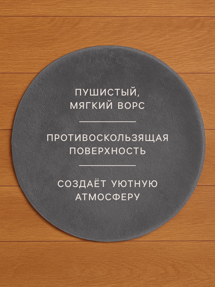 Круглый серый коврик станет изысканным акцентом в вашем интерьере, добавляя уют и стиль в любое помещение. Изготовленный из качественного полиэстера, этот коврик подходит как для взрослых, так и для детей, создавая комфортное пространство для отдыха и игр. Его однотонный серый цвет легко вписывается в различные стили оформления, от современного до классического, позволяя вам экспериментировать с декором.