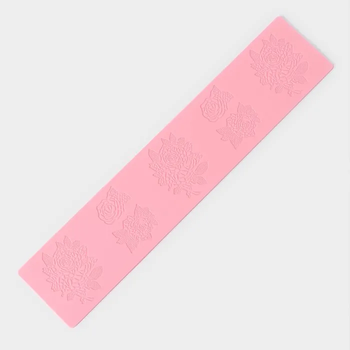 Коврик для айсинга Доляна «Розы», силикон, 37.5×8×0.1 см, розовый