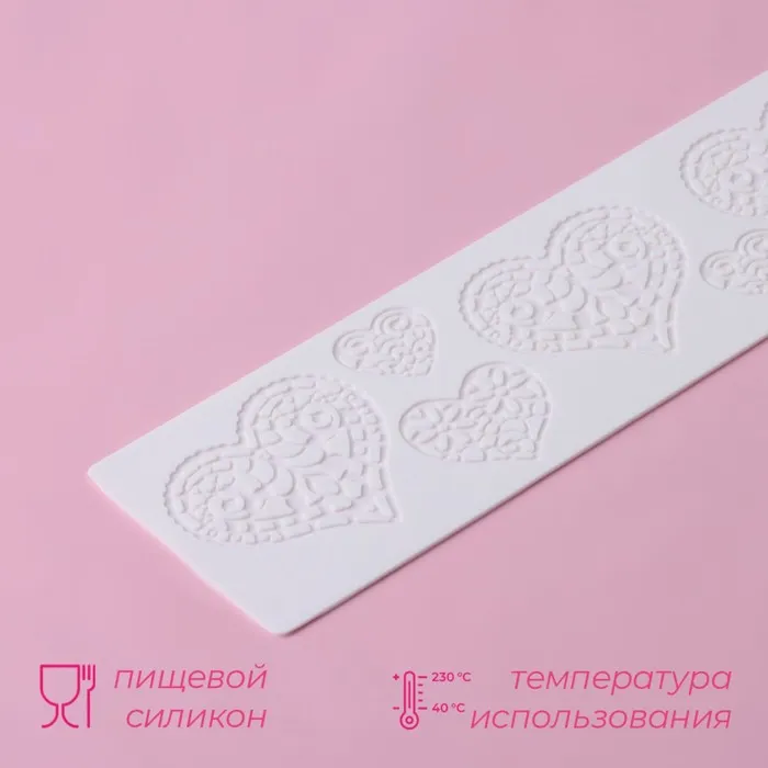 Коврик для айсинга Доляна «Сердца», силикон, 37.5×8×0.1 см, белый — Характеристики