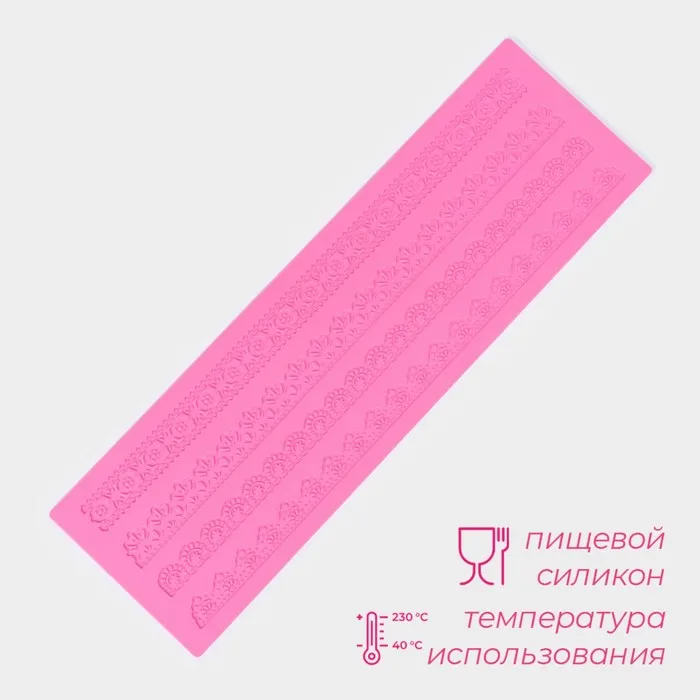 Коврик для айсинга Доляна «Узкие полосы», силикон, 39×12 см, розовый — Характеристики