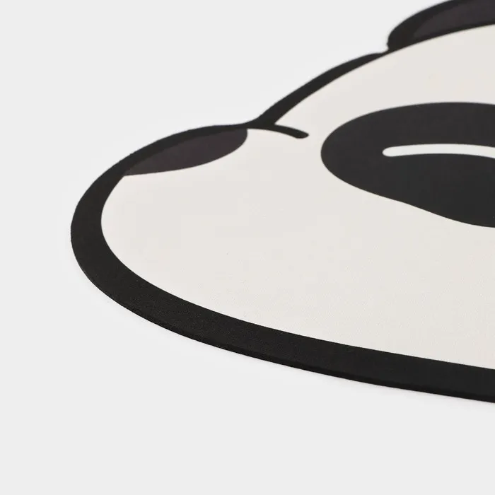 - Нежный и стильный дизайн: сочетание черного и белого цветов с изображением панды придает коврику игривость и делает его идеальным для детских комнат и мест, где важно создать атмосферу тепла.