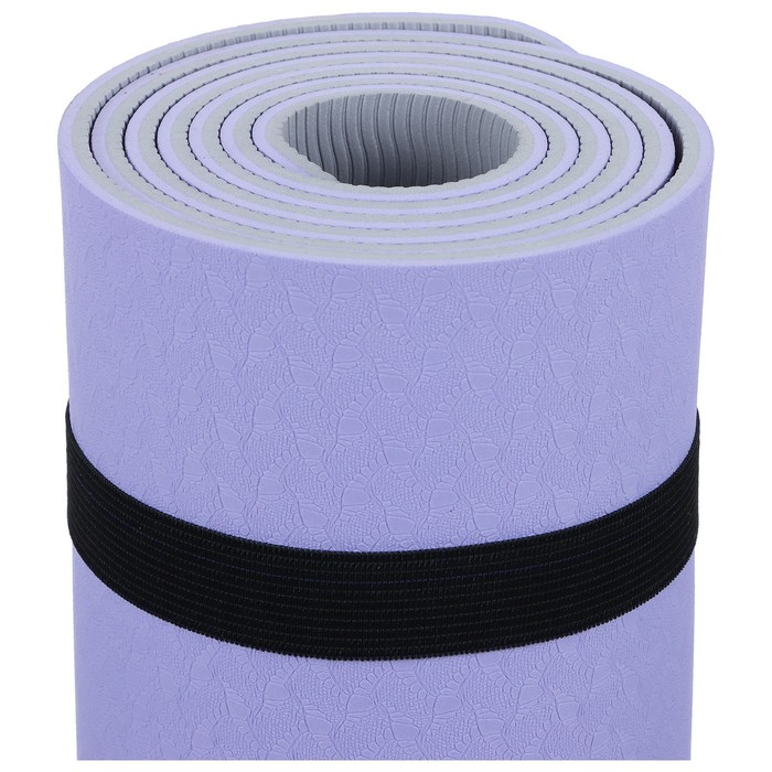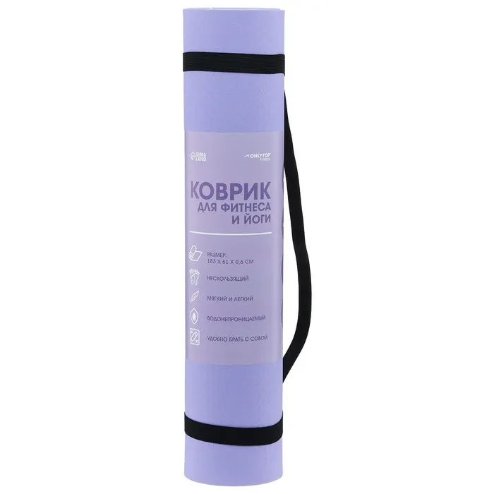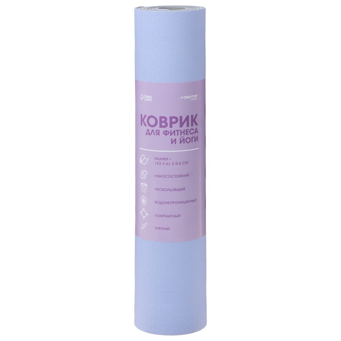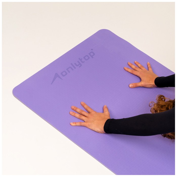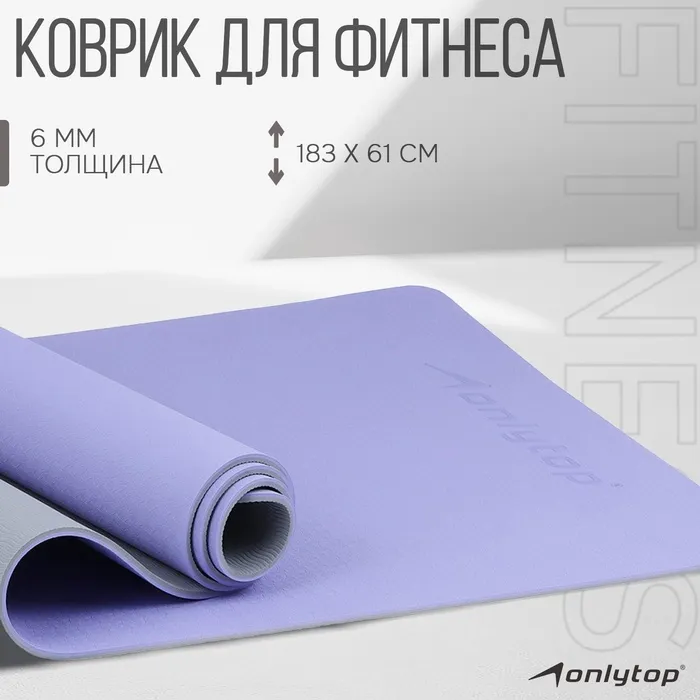 Коврик для фитнеса и йоги ONLYTOP, нескользящий, 183×61×0.6 см, цвет серый/фиолетовый — Характеристики