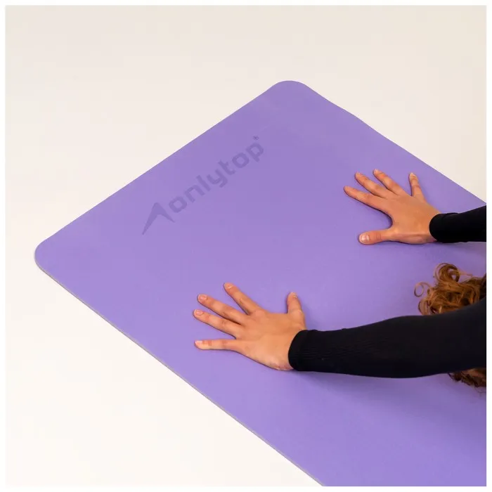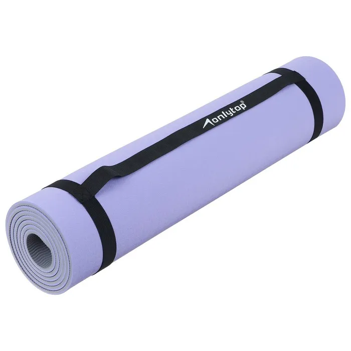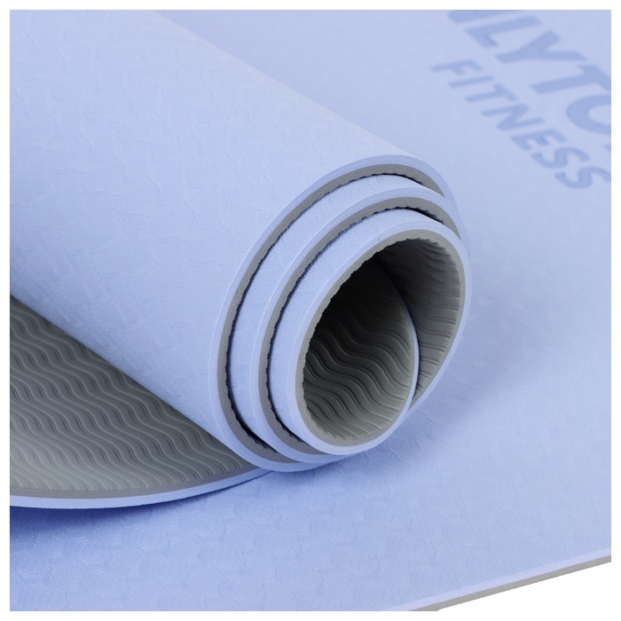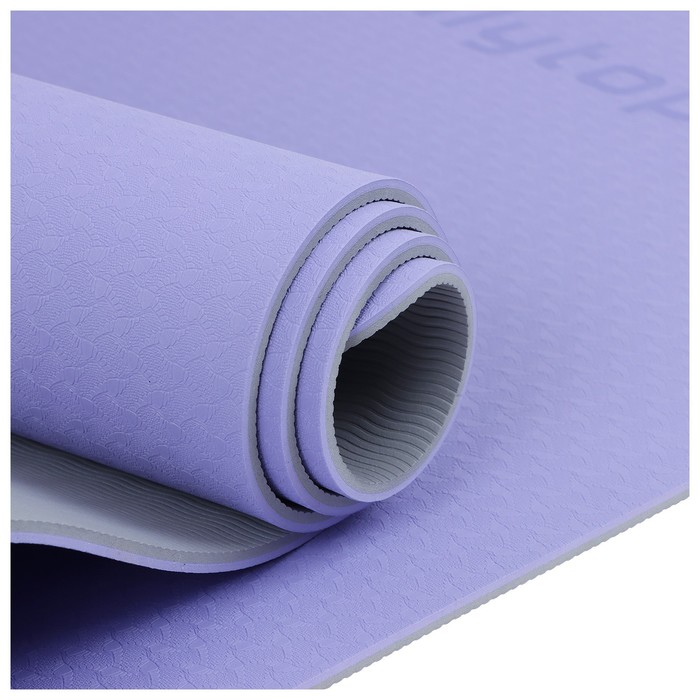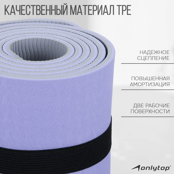 Коврик для фитнеса и йоги ONLYTOP, нескользящий, 183×61×0.6 см, цвет серый/фиолетовый