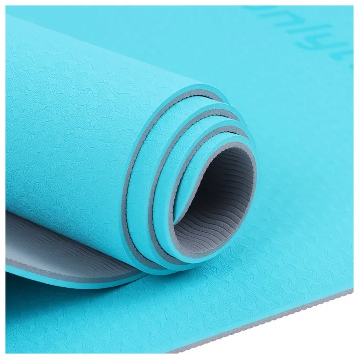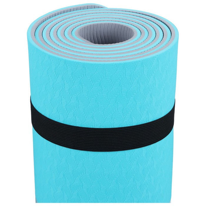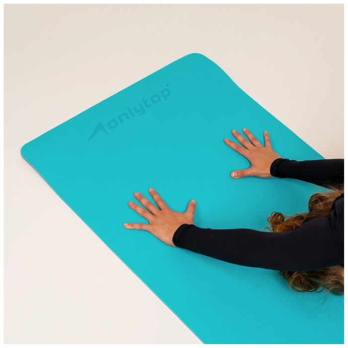 Коврик для фитнеса и йоги ONLYTOP, нескользящий, 183×61×0.6 см, цвет серый/голубой