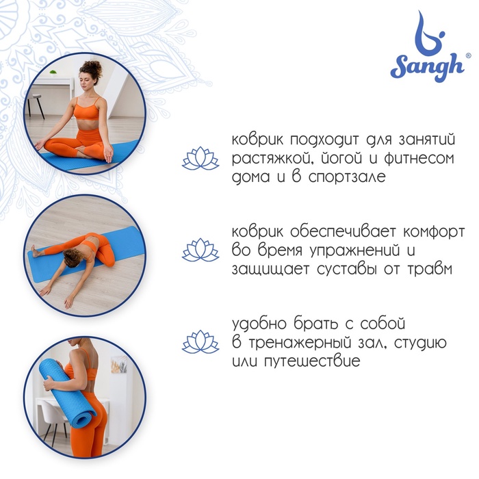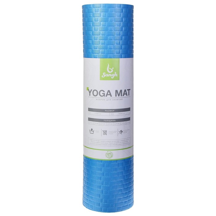 Коврик для йоги Sangh, 183х61х0,7 см, цвет синий — Характеристики