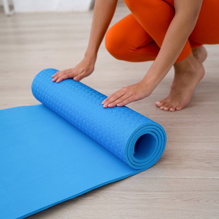 Коврик подходит для занятий йогой и фитнесом дома и в спортивных залах. Помогает в выполнении асан или других упражнений. Смягчает упор тела на твёрдую поверхность. Сохраняет форму после выполнения упражнений.