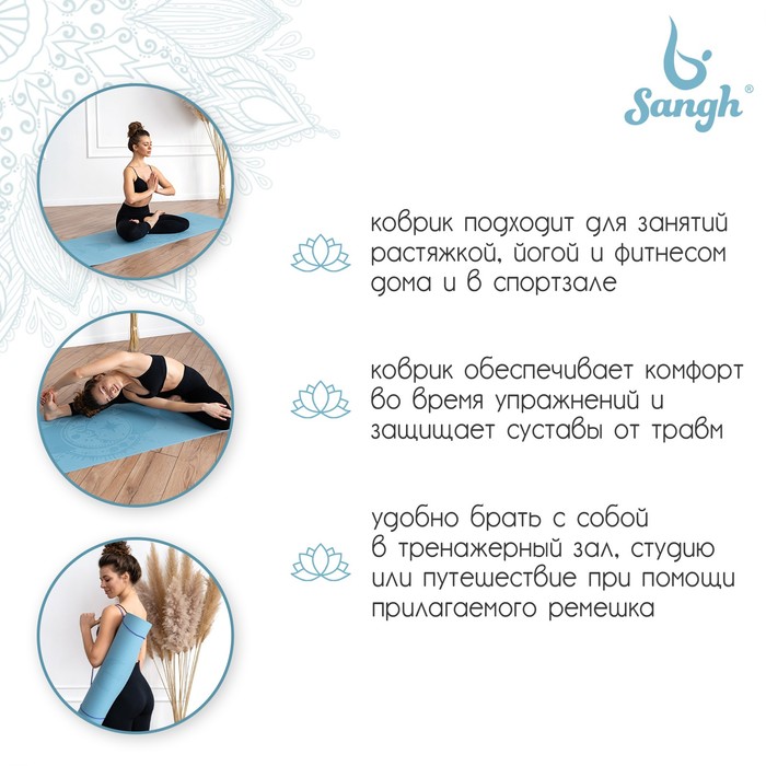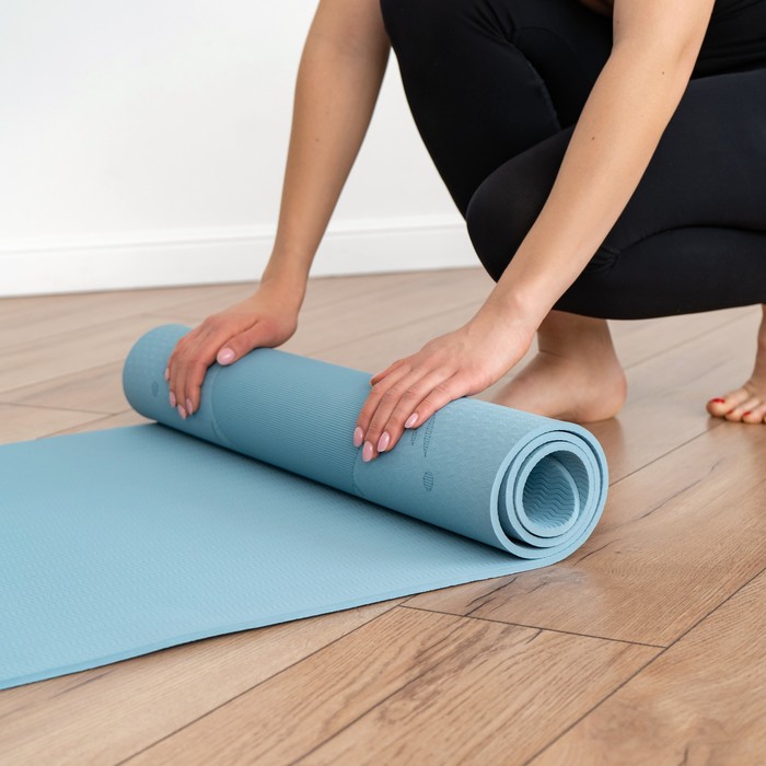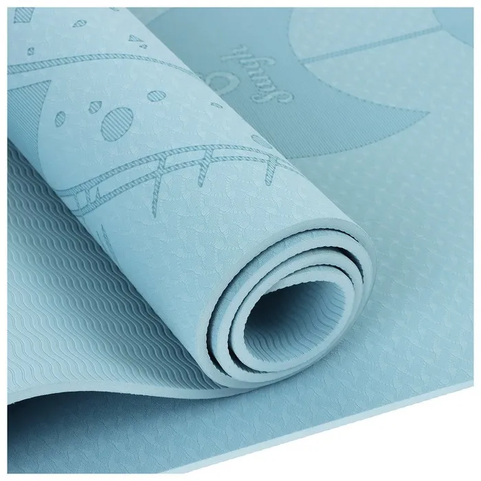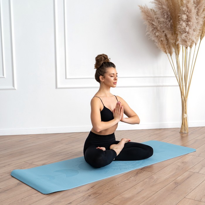 Коврик подходит для занятий йогой и фитнесом дома и в спортивных залах. Помогает в выполнении асан или других упражнений. Смягчает упор тела на твёрдую поверхность. Сохраняет форму после выполнения упражнений.