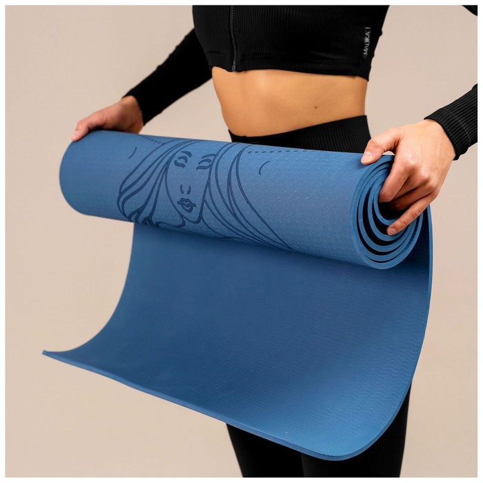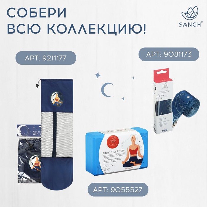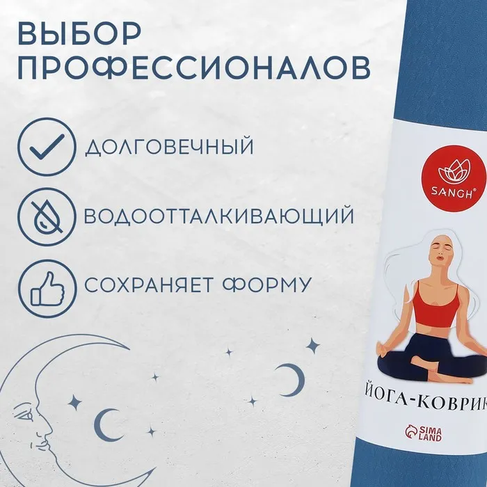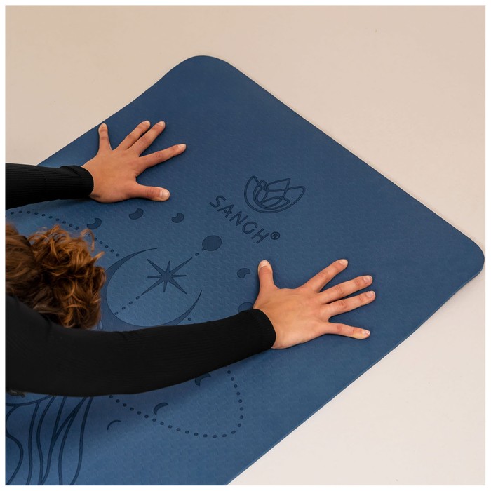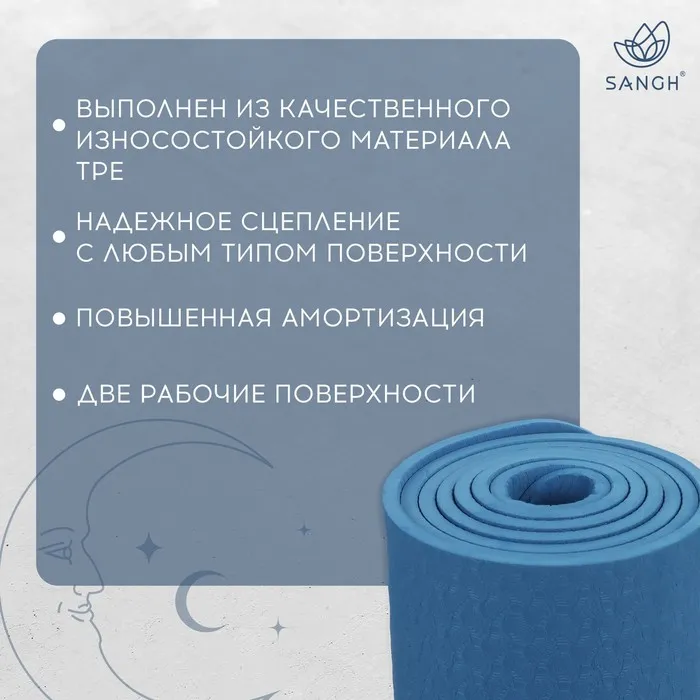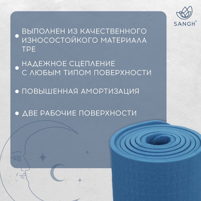 Коврик для йоги Sangh Moon, нескользящий, 183×61×0.6 см, цвет синий — Характеристики