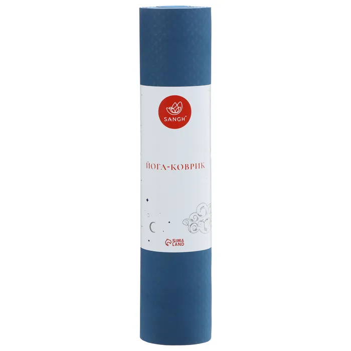 Коврик для йоги Sangh, нескользящий, 183×61×0.6 см, цвет синий