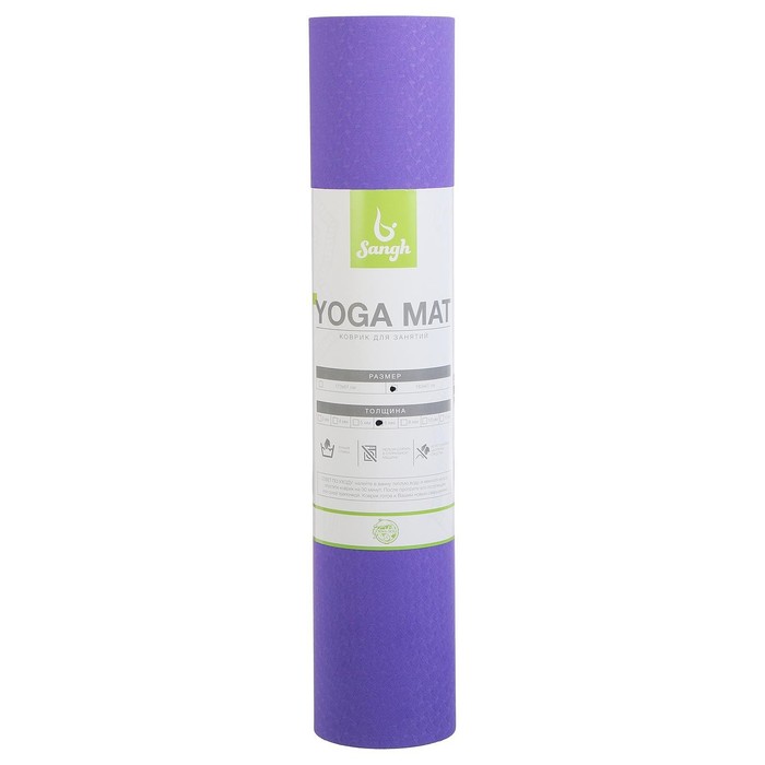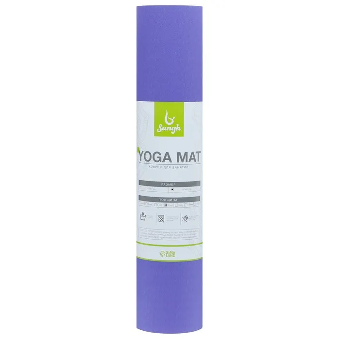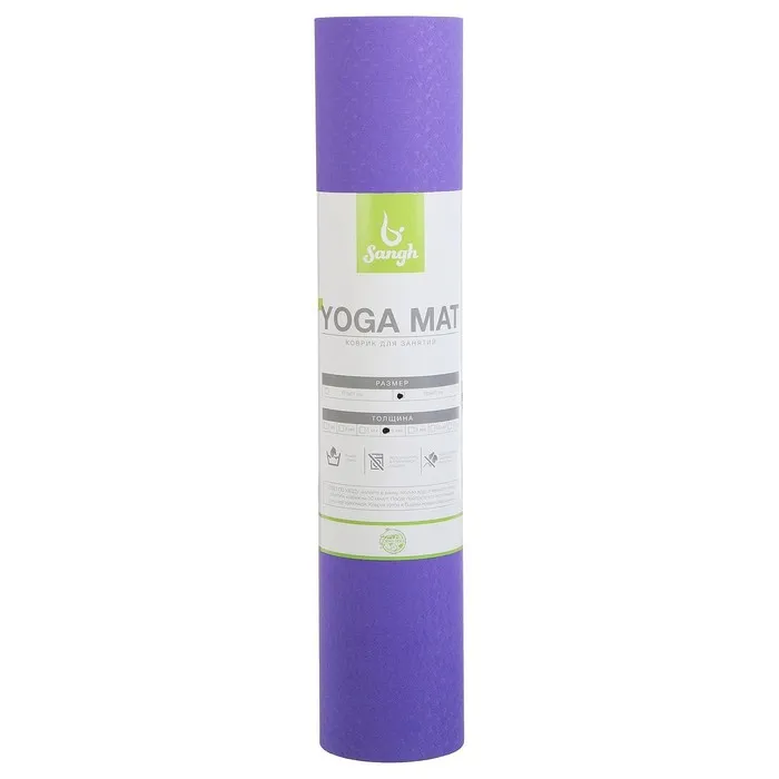 Коврик для йоги Sangh, нескользящий, 183×61×0.6 см, цвет сиреневый