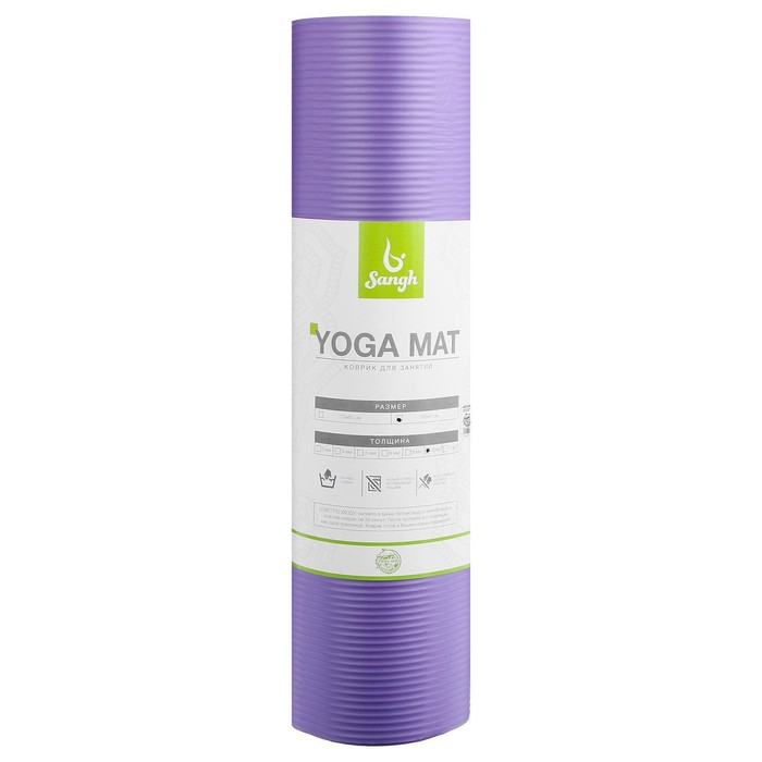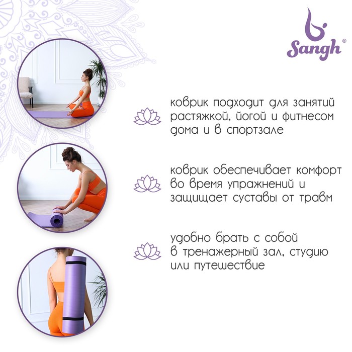 Коврик для йоги Sangh, нескользящий, 183×61×1 см, цвет фиолетовый — Характеристики