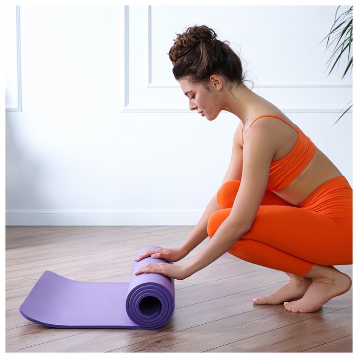 Коврик подходит для занятий йогой и фитнесом дома и в спортивных залах. Помогает в выполнении асан или других упражнений. Смягчает упор тела на твёрдую поверхность. Сохраняет форму после выполнения упражнений.