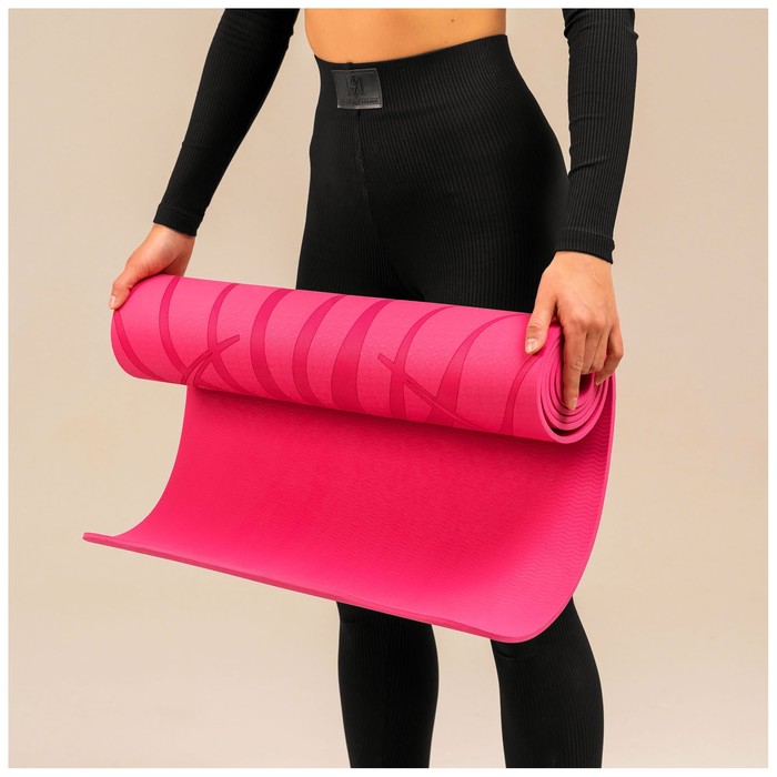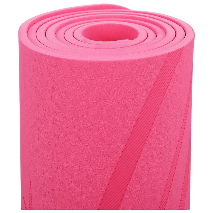 Коврик подходит для занятий йогой и фитнесом дома и в спортивных залах. Помогает в выполнении асан или других упражнений. Смягчает упор тела на твёрдую поверхность. Сохраняет форму после выполнения упражнений.
