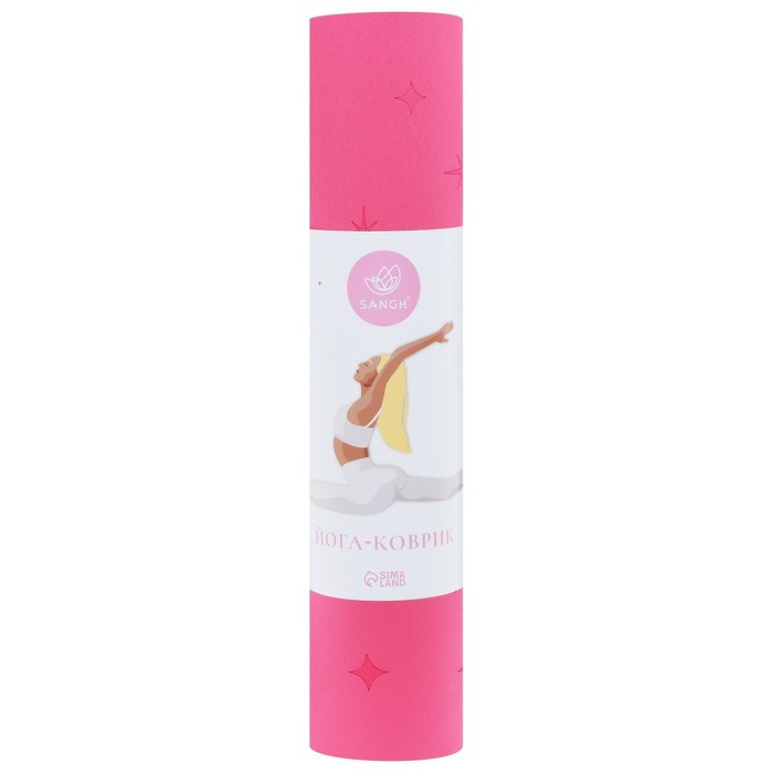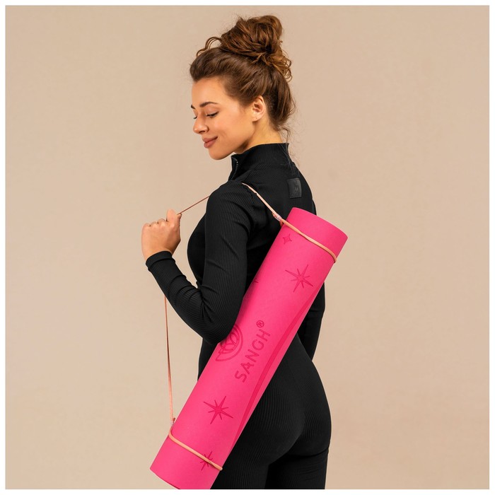 Коврик для йоги Sangh Sun, нескользящий, 183×61×0.6 см, цвет розовый