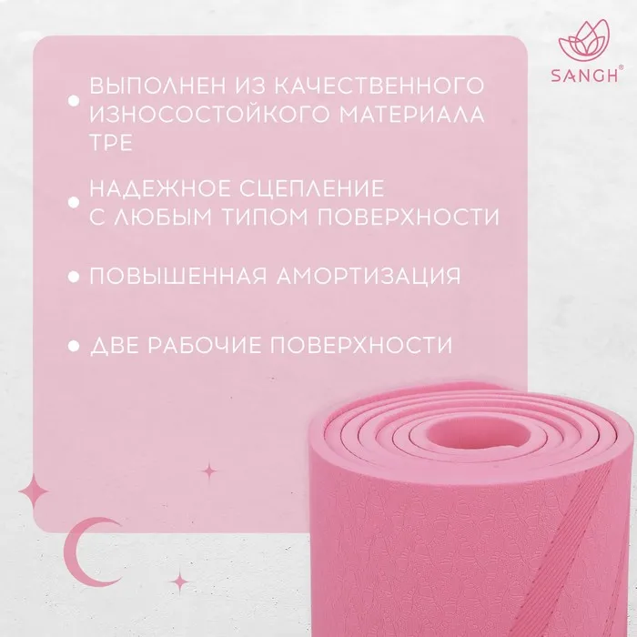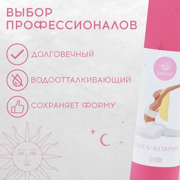 Коврик для йоги Sangh Sun, нескользящий, 183×61×0.6 см, цвет розовый — Характеристики