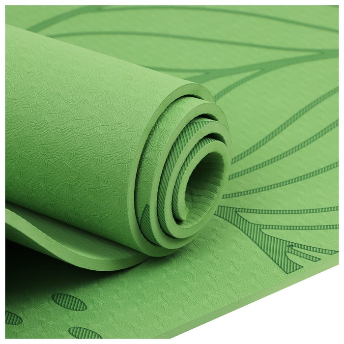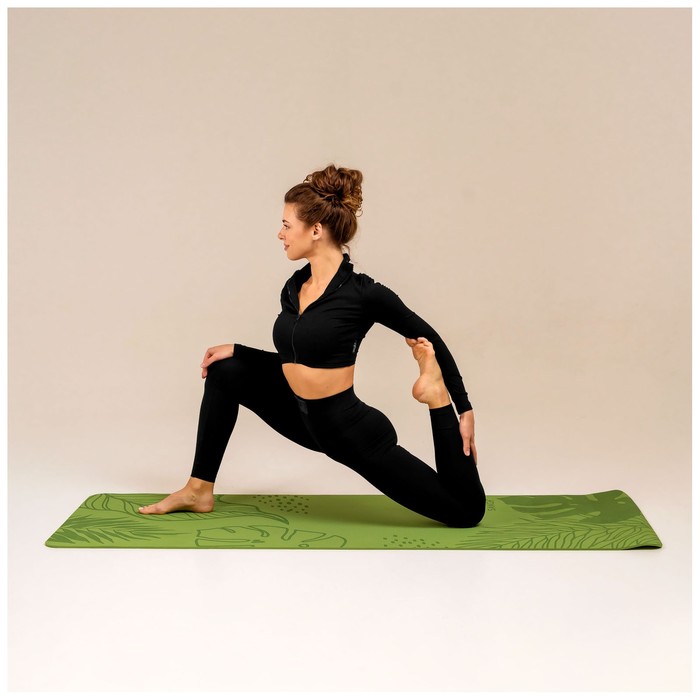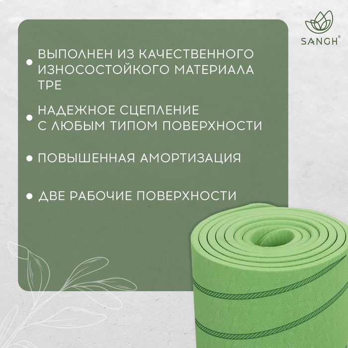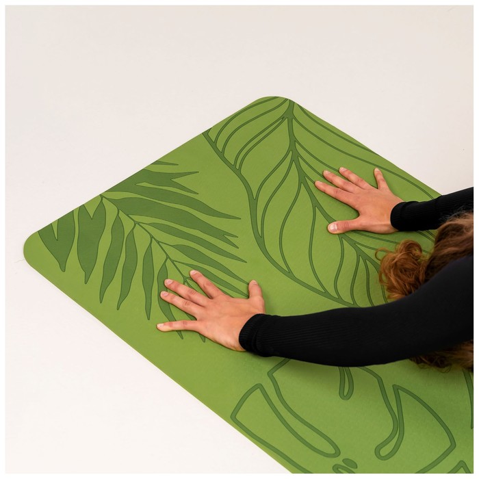 Коврик для йоги Sangh Tropics, нескользящий, 183×61×0.6 см, цвет зелёный — Характеристики