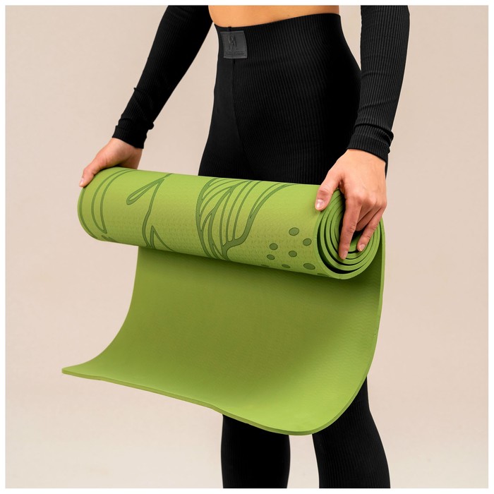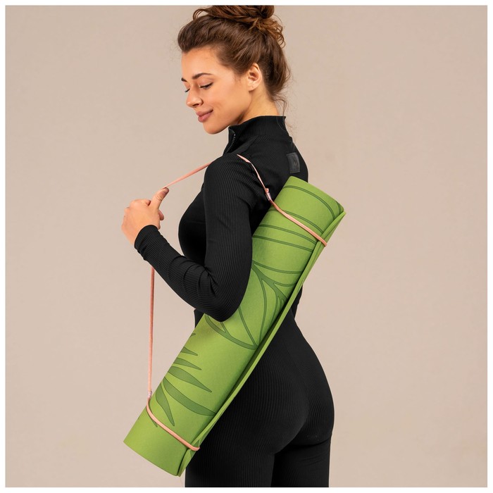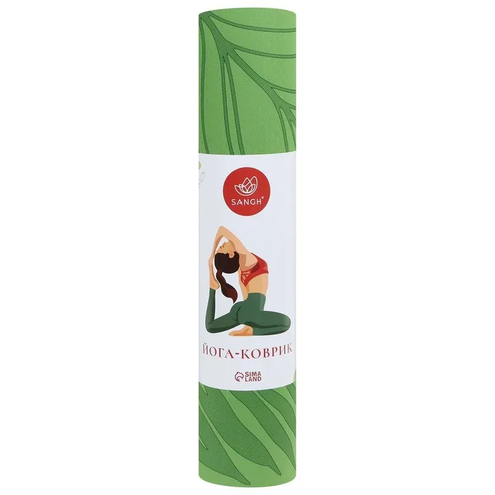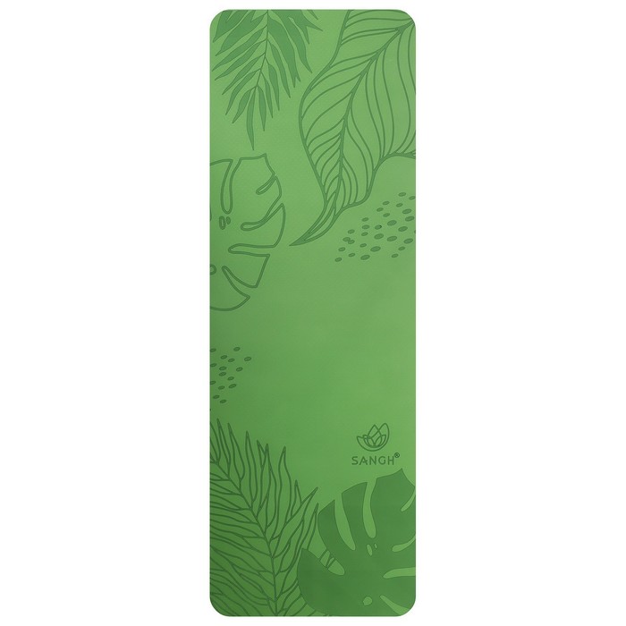 Коврик для йоги Sangh Tropics, нескользящий, 183×61×0.6 см, цвет зелёный