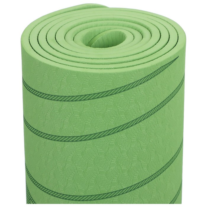 Коврик подходит для занятий йогой и фитнесом дома и в спортивных залах. Помогает в выполнении асан или других упражнений. Смягчает упор тела на твёрдую поверхность. Сохраняет форму после выполнения упражнений.