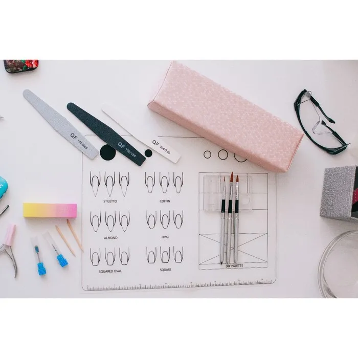 - Удобство и простота: Гладкая поверхность коврика предотвращает прилипание лака, облегчая процесс маникюра и предотвращая загрязнения.