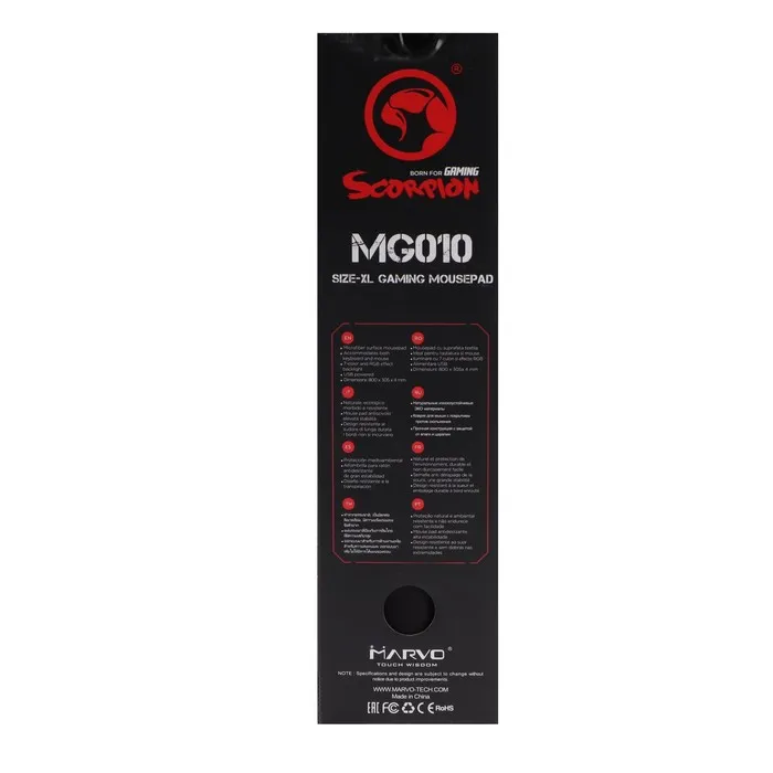 Коврик для мыши MARVO MG010, игровой, 800x305x4 мм, подсветка, чёрный — Характеристики