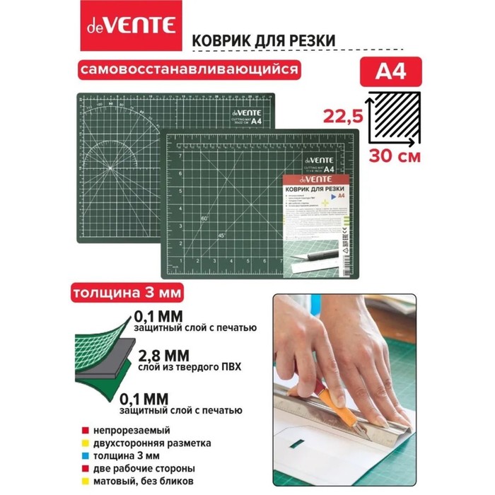 Коврик для резки макетный A4 deVENTE, 3 мм, непрорезаемый, двусторонний, трёхслойный — Характеристики