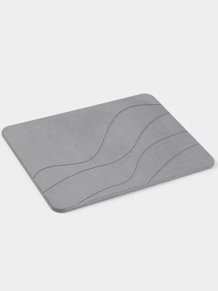 Этот коврик из природного диатомита ускоряет сушку посуды, впитывая влагу в 3 раза быстрее обычных тканевых подставок. Его пористая поверхность размером 40×30 см вмещает даже крупные тарелки и кастрюли, оставаясь при этом сухой на ощупь.