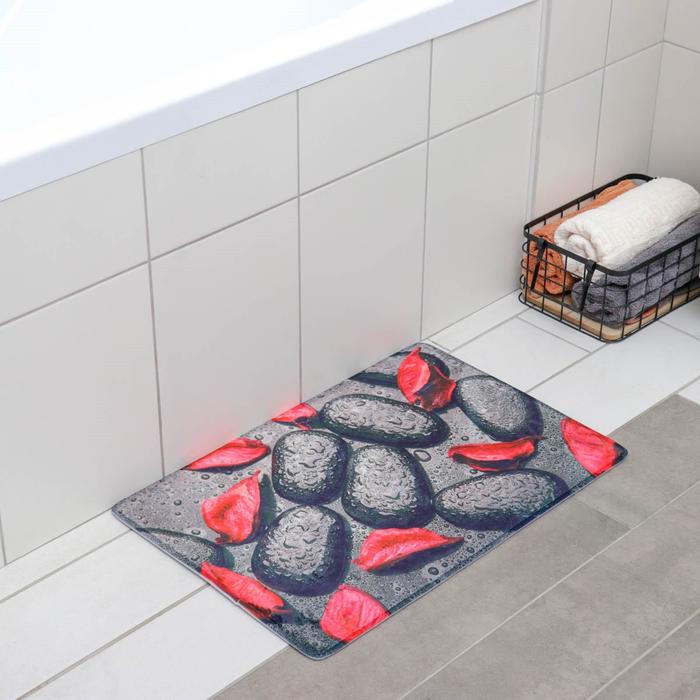 Коврик для ванной и туалета Доляна «Галька», 40×60 см, цвет бордовый — Характеристики
