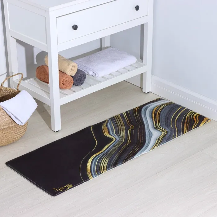 Коврик для ванной и туалета Доляна «Камень», 44×120 см, чёрный — Характеристики