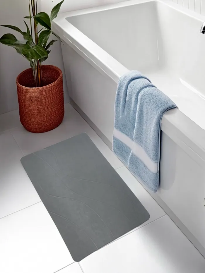 - Экологически чистый материал: диатомит активно впитывает влагу, что позволяет коврику стремительно высыхать и предотвращает образование запахов, создавая в ванной комнате атмосферу свежести.