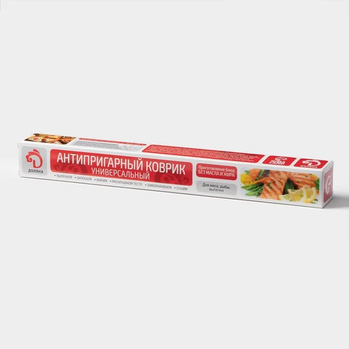 Антипригарный универсальный коврик – приготовление любимых блюд без лишнего жира! Коврик можно использовать для выпечки, жарки, раскатки теста, сушки, заморозки. Изделие многоразовое. За счёт антипригарного покрытия продукты не пригорают и легко снимаются с поверхности.