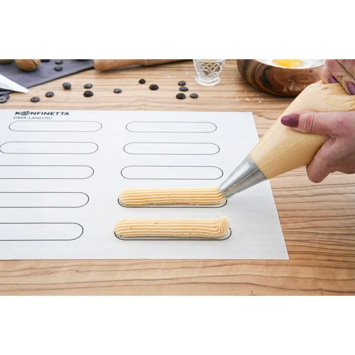 Коврик для выпечки армированный KONFINETTA «Эклер», силикон, 38×28 см, 0.4 мм, белый — Характеристики