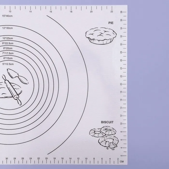 - Универсальность: Коврик подойдет для раскатывания теста для пирогов, пиццы, пельменей, а также для других кулинарных задач.