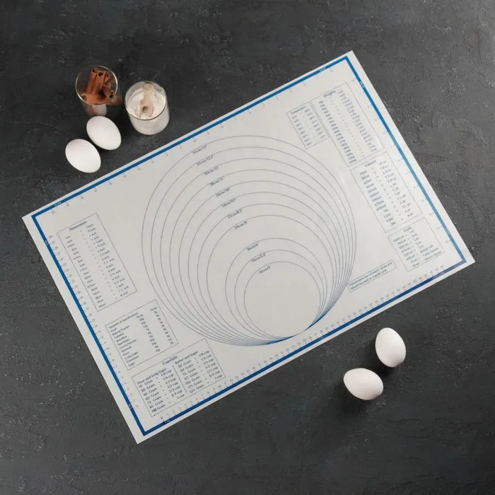 Коврик для выпечки и раскатки теста с разметкой, армированный, силикон, 59×38.5 см, белый — Характеристики