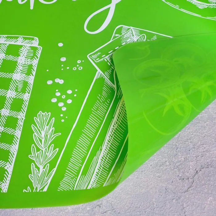 Удобный размер 70×50 см позволяет сохранять рабочую поверхность и столешницы кухонного гарнитура в чистоте, так как используется только покрытие коврика.
