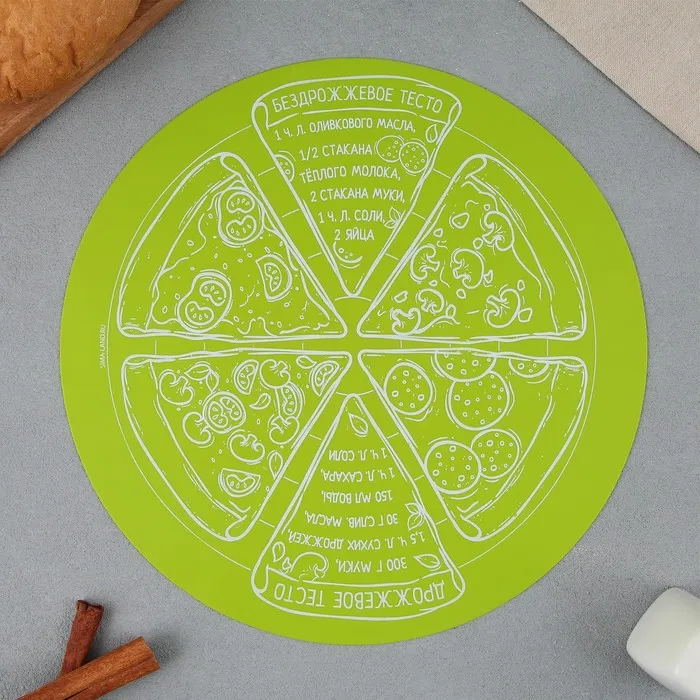 Коврик для выпечки силиконовый KONFINETTA «Идеальная пицца», 30 х 30 см, зелёный — Характеристики